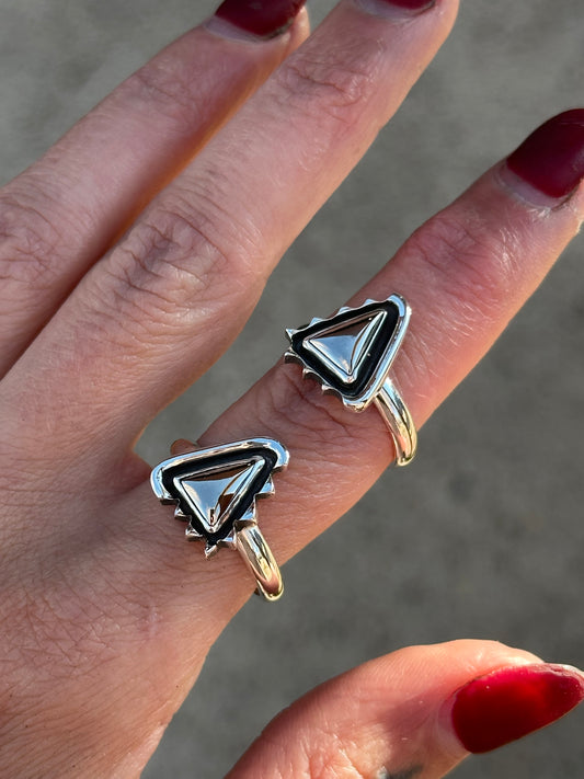 Mohawkite half-spiked triangle ring- size 7.5