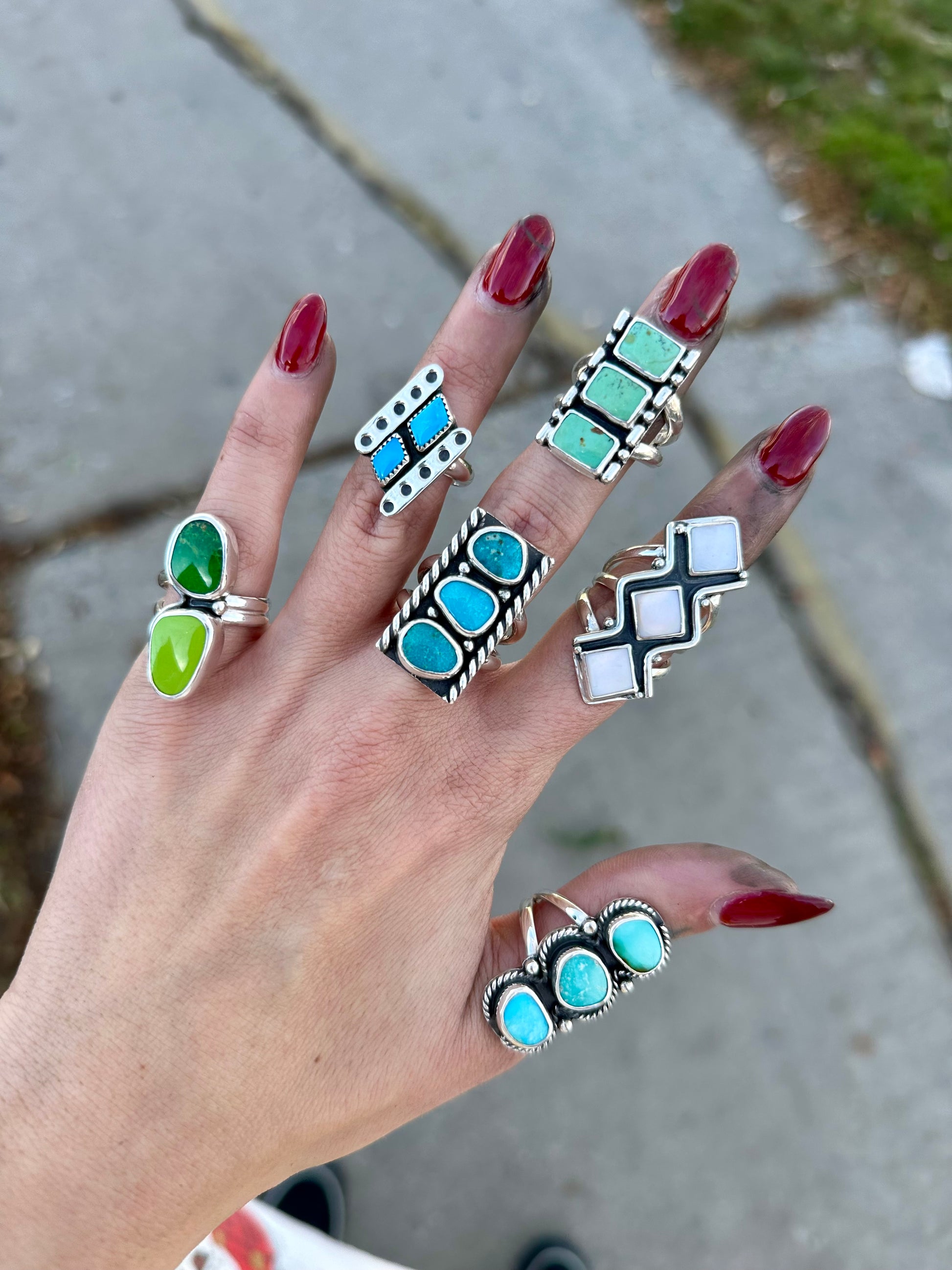 Tri-stone Pilot Mountain turquoise ring- size 9